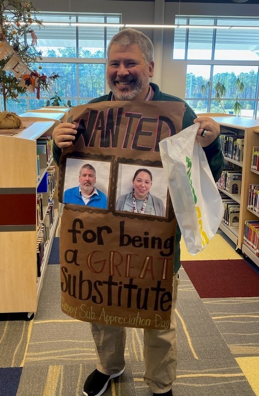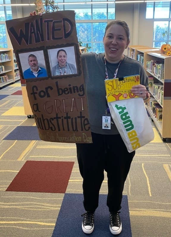 Friday November 18th is National Substitute Appreciation Day! Page Middle School would like to thank our amazing building level substitutes, Jeff Chesser and Katie Hefner, for all that they do on a daily basis for our students, our staff, and our school! Mrs. Kerr's EIB students honored both with cards, banners, and a Subway 'sub' lunch.
